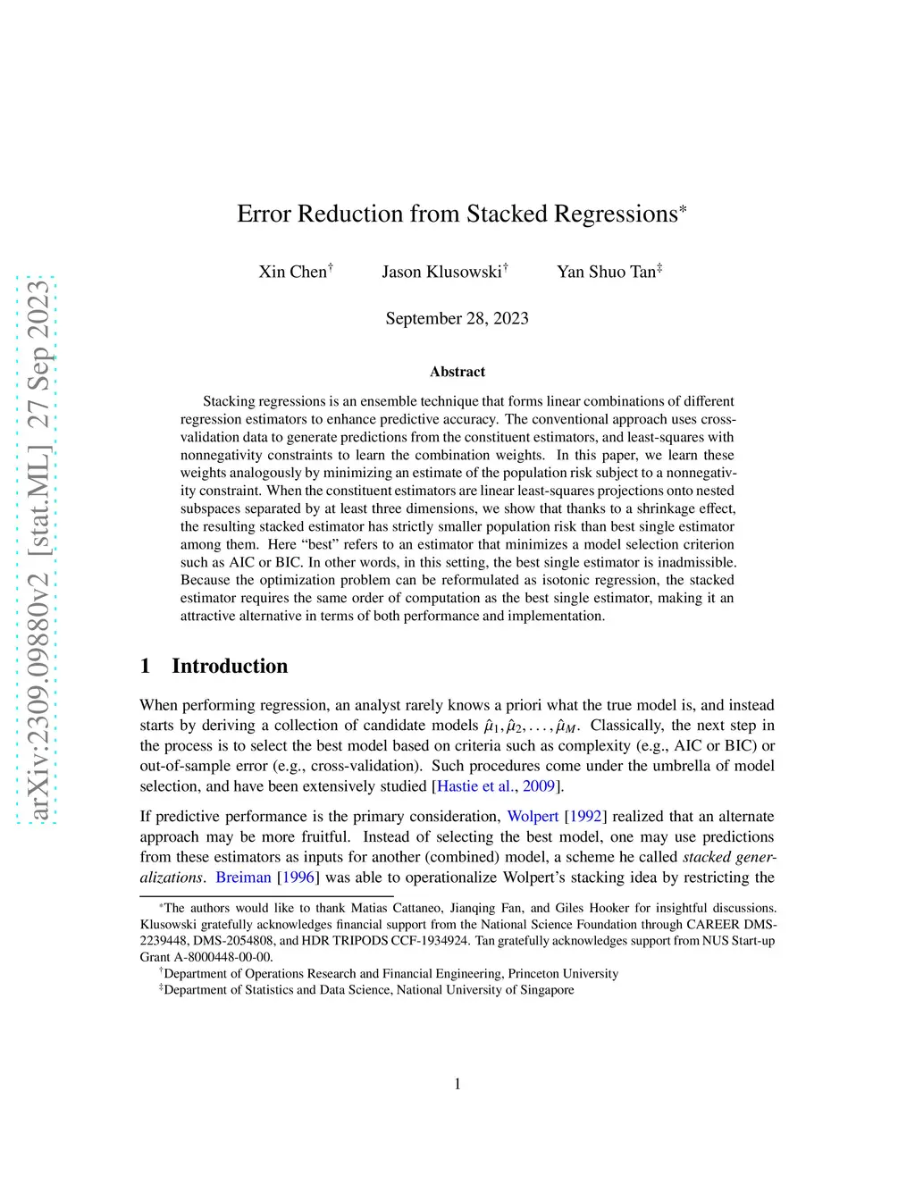 Error Reduction from Stacked Regressions