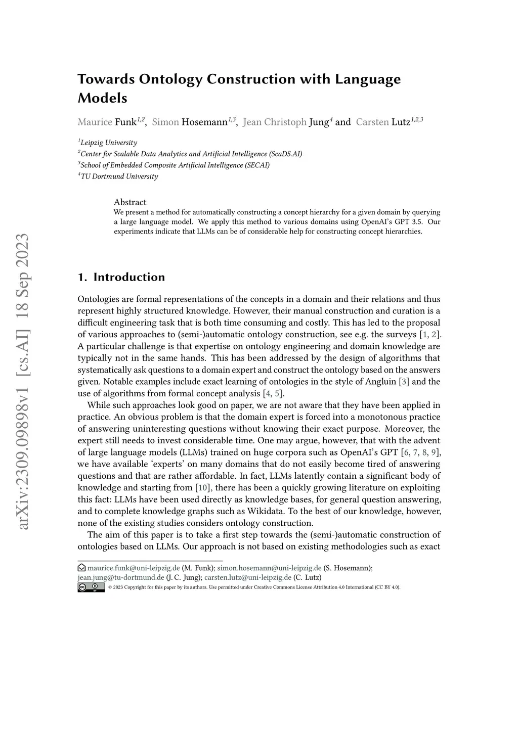 We present a method for automatically constructing a concept hierarchy for a given domain by querying a large language model. We apply this method to various domains using OpenAI's GPT 3.5. Our experiments indicate that LLMs can be of considerable help for constructing concept hierarchies.
