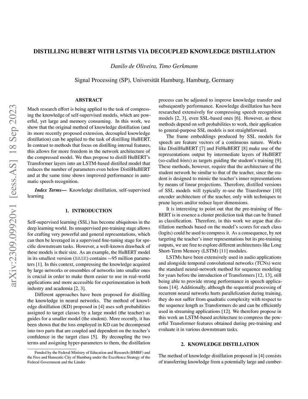 Distilling HuBERT with LSTMs via Decoupled Knowledge Distillation