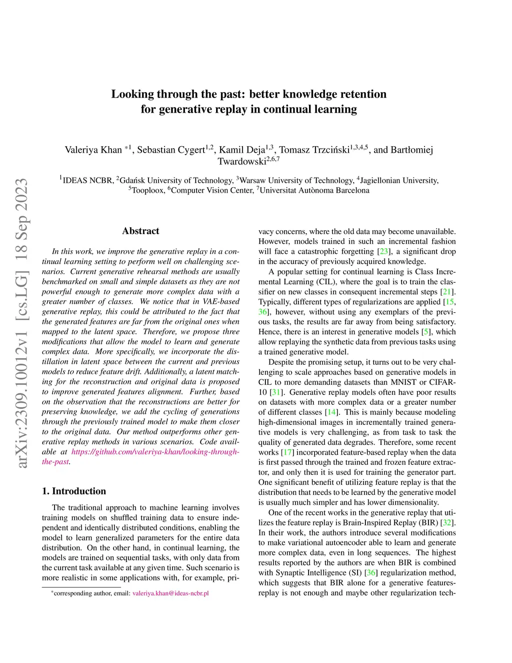 Looking through the past: better knowledge retention for generative