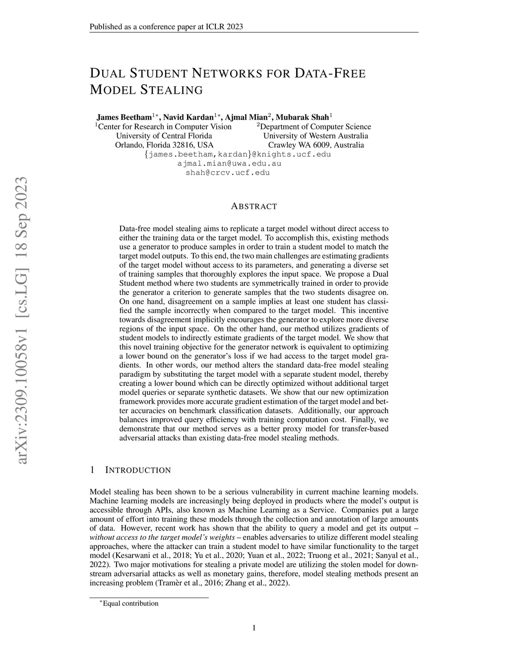 Dual Student Networks for Data-Free Model Stealing