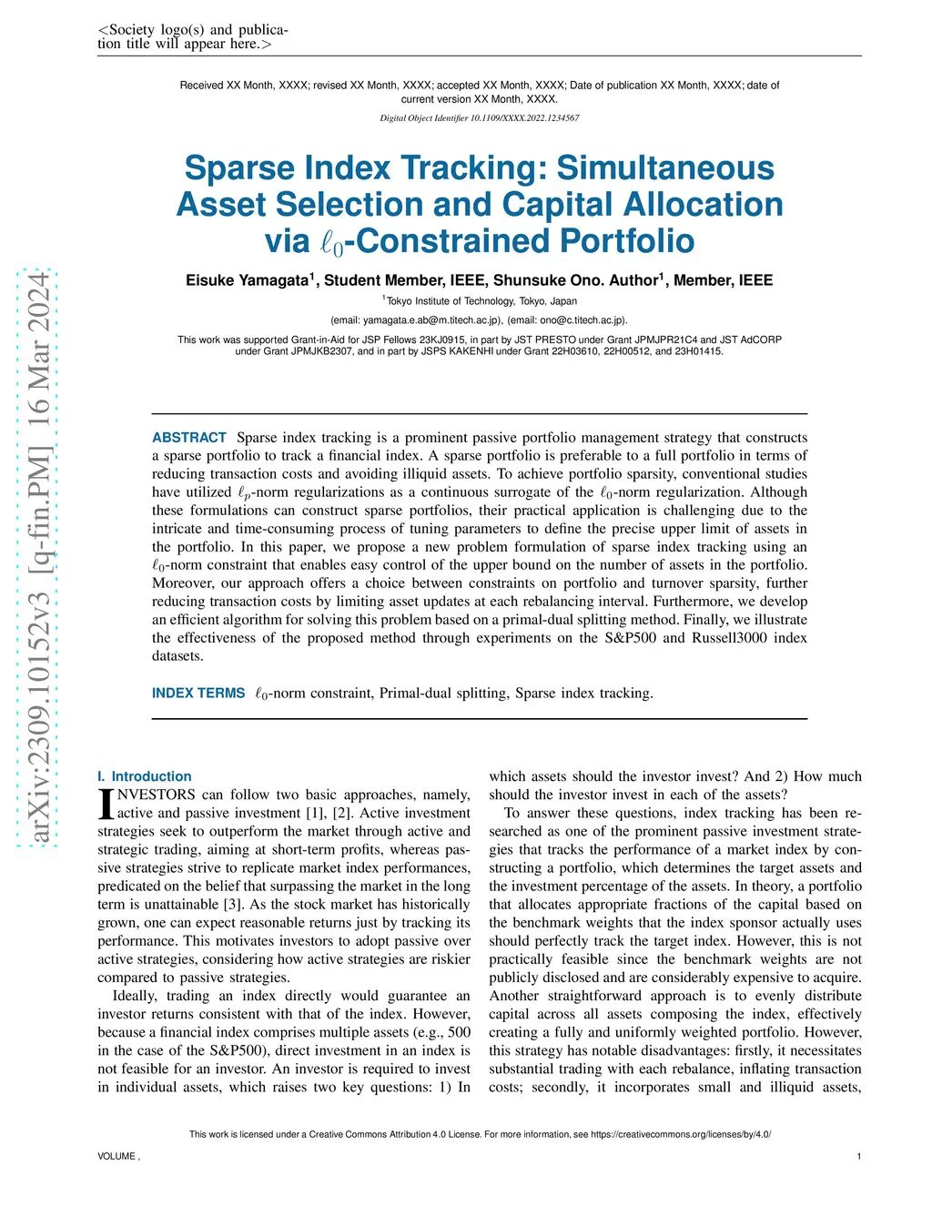 Sparse Index Tracking: Simultaneous Asset Selection and Capital