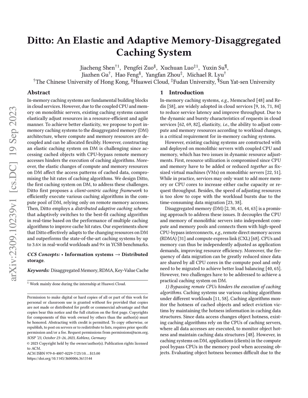 Ditto: An Elastic and Adaptive Memory-Disaggregated Caching System