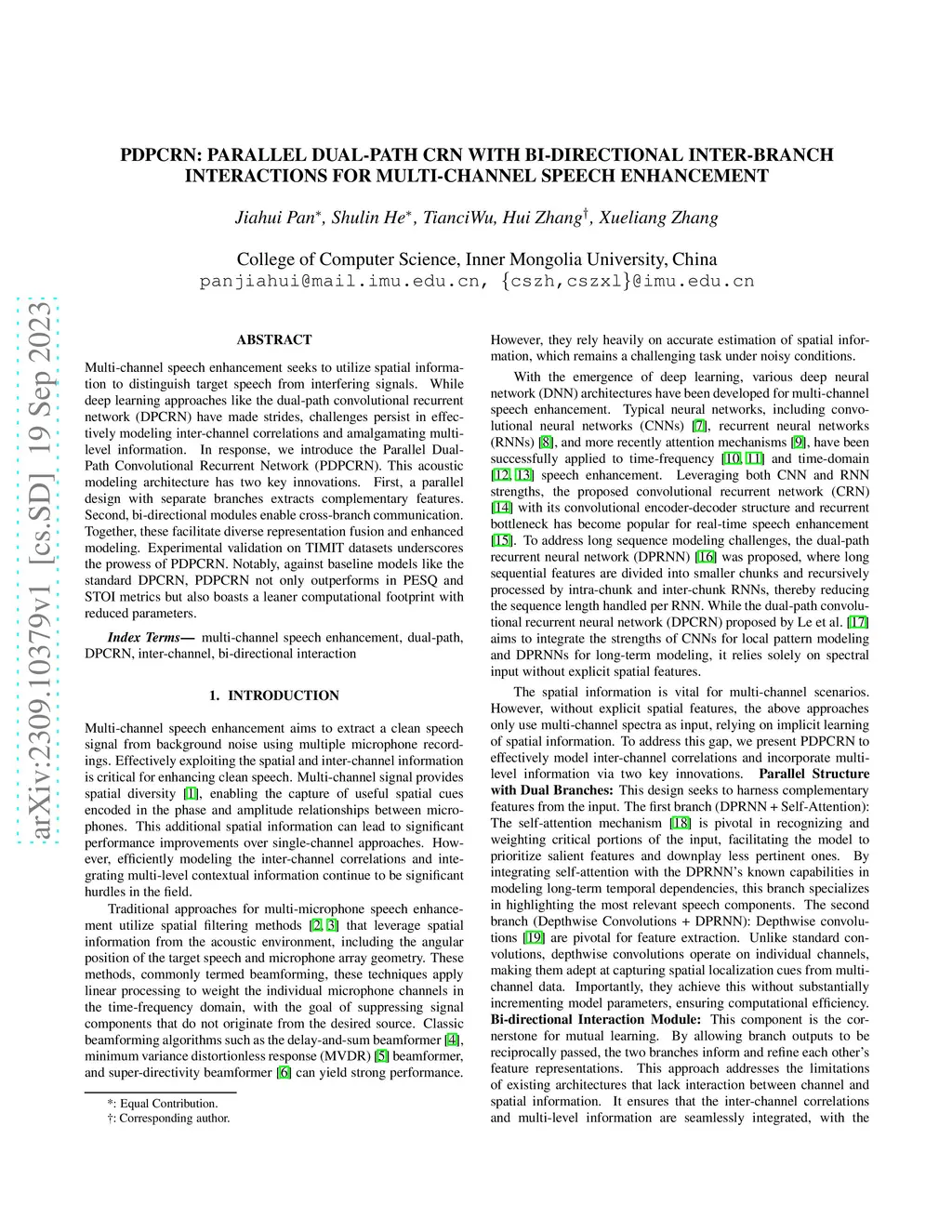 PDPCRN: Parallel Dual-Path CRN with Bi-directional Inter-Branch
