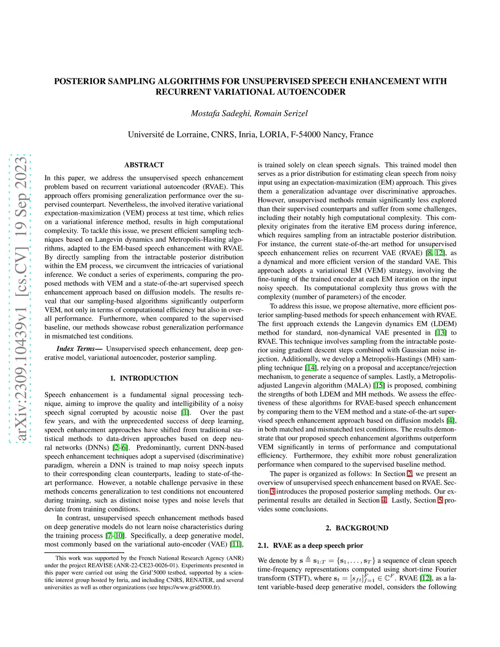 In this paper, we address the unsupervised speech enhancement problem based on recurrent variational autoencoder (RVAE). This approach offers promising generalization performance over the supervised counterpart. Nevertheless, the involved iterative variational expectation-maximization (VEM) process at test time, which relies on a variational inference method, results in high computational complexity. To tackle this issue, we present efficient sampling techniques based on Langevin dynamics and Metropolis-Hasting algorithms, adapted to the EM-based speech enhancement with RVAE. By directly sampling from the intractable posterior distribution within the EM process, we circumvent the intricacies of variational inference. We conduct a series of experiments, comparing the proposed methods with VEM and a state-of-the-art supervised speech enhancement approach based on diffusion models. The results reveal that our sampling-based algorithms significantly outperform VEM, not only in terms of computational efficiency but also in overall performance. Furthermore, when compared to the supervised baseline, our methods showcase robust generalization performance in mismatched test conditions.