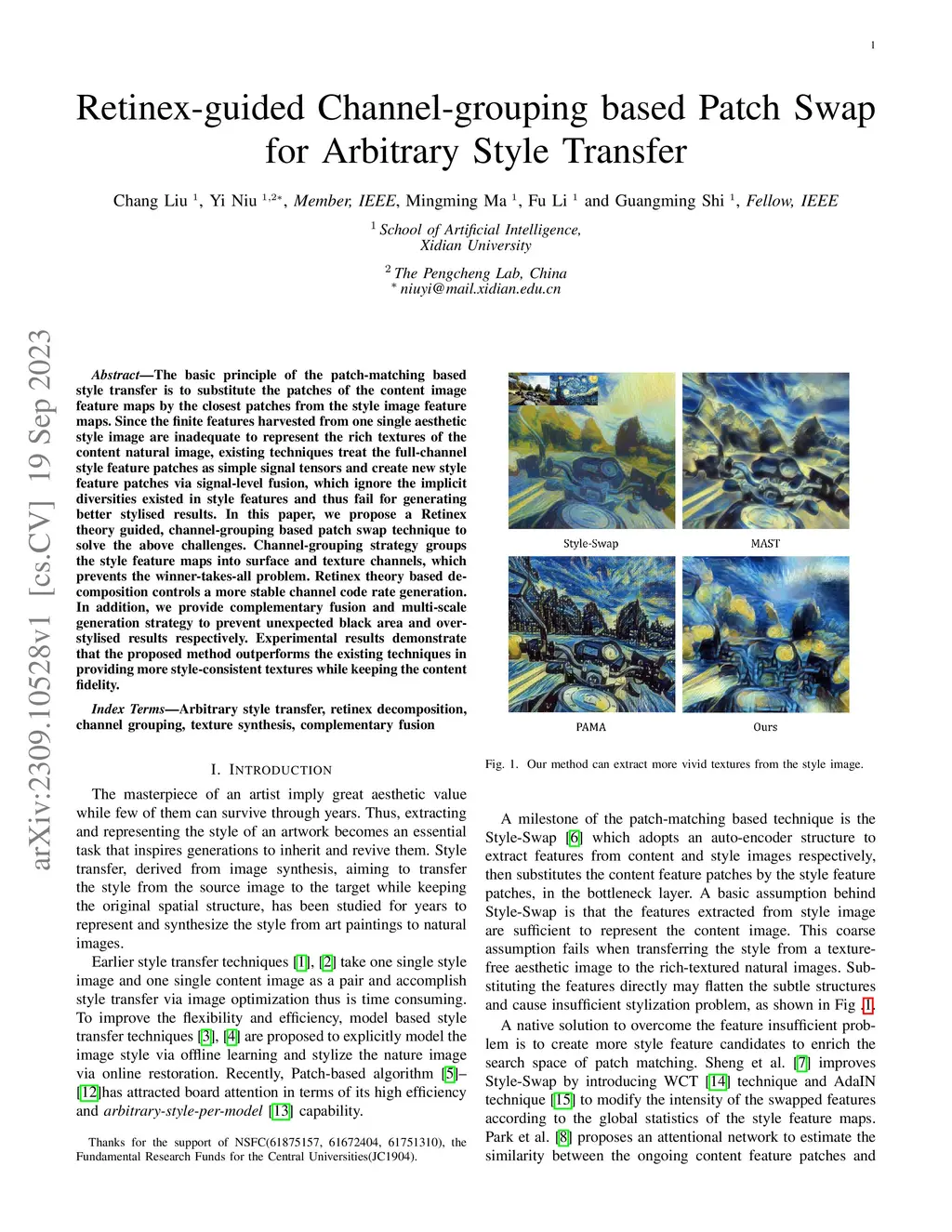 Retinex-guided Channel-grouping based Patch Swap for Arbitrary Style