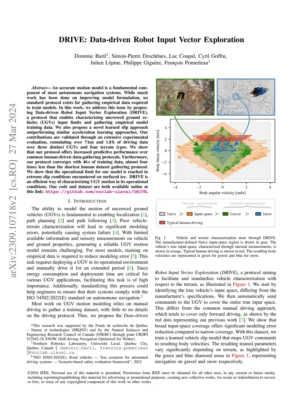 An accurate motion model is a fundamental component of most autonomous navigation systems. While much work has been done on improving model formulation, no standard protocol exists for gathering empirical data required to train models. In this work, we address this issue by proposing Data-driven Robot Input Vector Exploration (DRIVE), a protocol that enables characterizing uncrewed ground vehicles (UGVs) input limits and gathering empirical model training data. We also propose a novel learned slip approach outperforming similar acceleration learning approaches. Our contributions are validated through an extensive experimental evaluation, cumulating over 7 km and 1.8 h of driving data over three distinct UGVs and four terrain types. We show that our protocol offers increased predictive performance over common human-driven data-gathering protocols. Furthermore, our protocol converges with 46 s of training data, almost four times less than the shortest human dataset gathering protocol. We show that the operational limit for our model is reached in extreme slip conditions encountered on surfaced ice. DRIVE is an efficient way of characterizing UGV motion in its operational conditions. Our code and dataset are both available online at this link: https://github.com/norlab-ulaval/DRIVE.