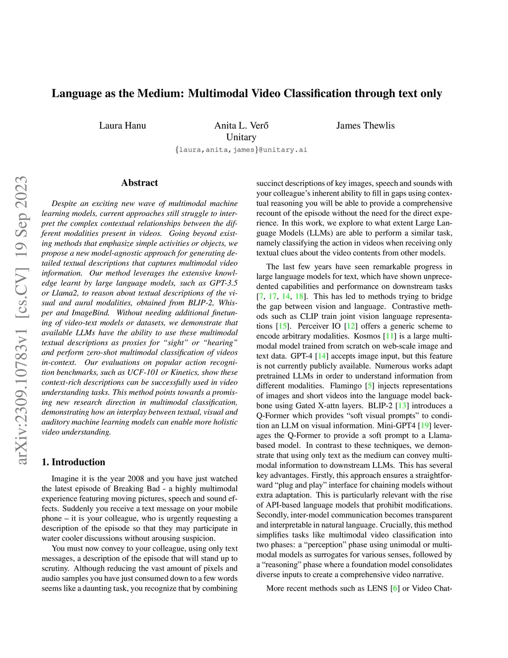 Language as the Medium: Multimodal Video Classification through text