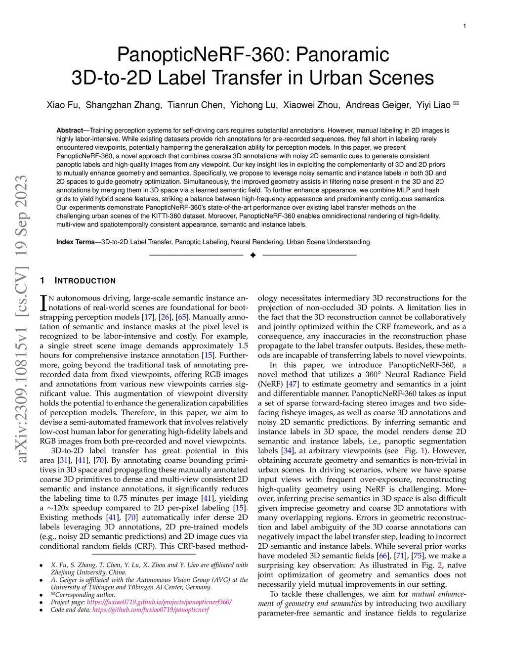 PanopticNeRF-360: Panoramic 3D-to-2D Label Transfer in Urban Scenes