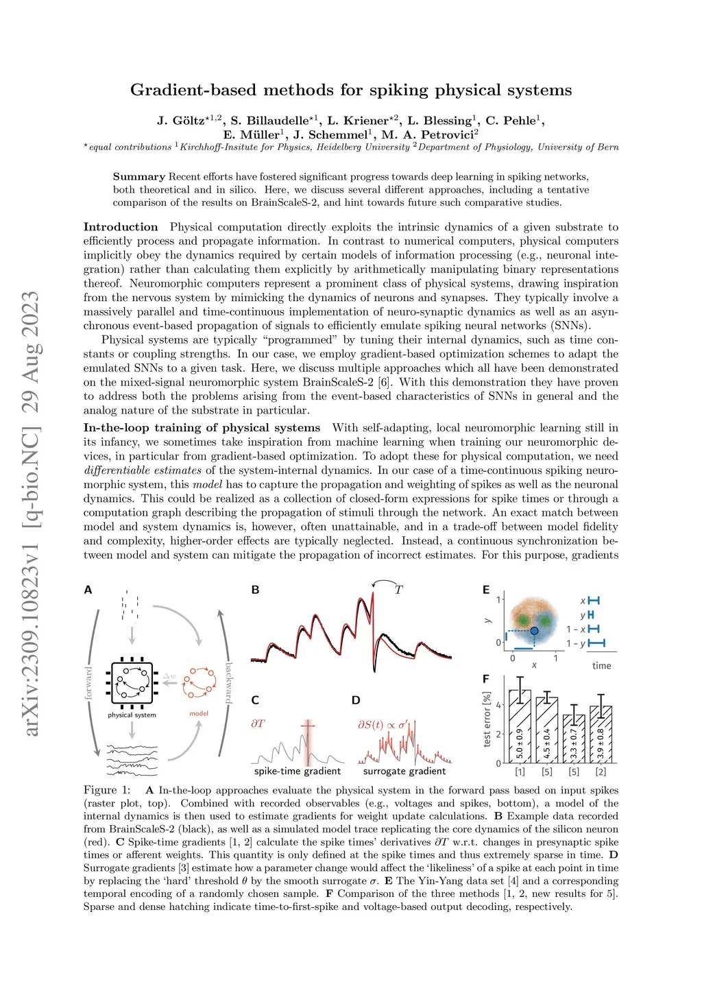 Gradient-based methods for spiking physical systems