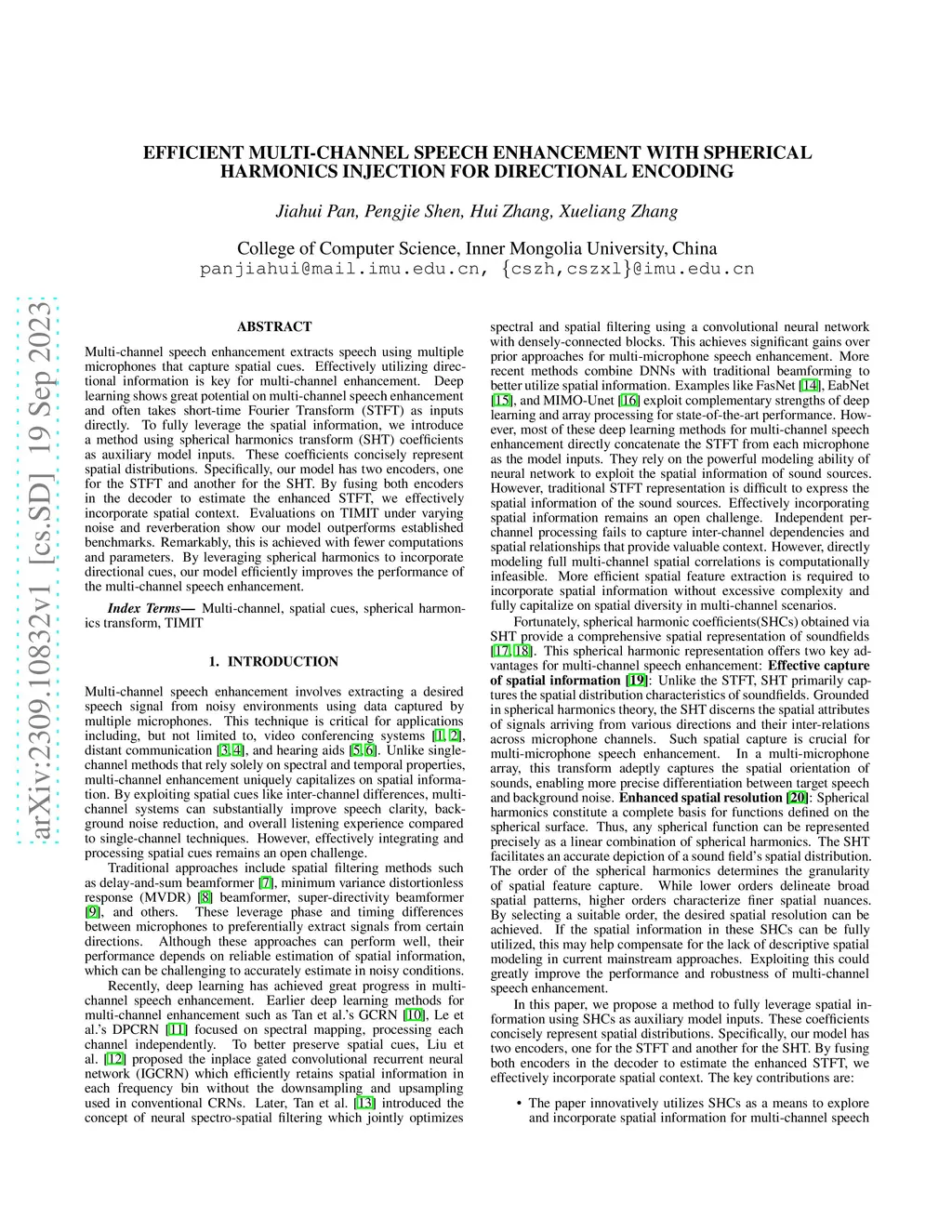 Efficient Multi-Channel Speech Enhancement with Spherical Harmonics