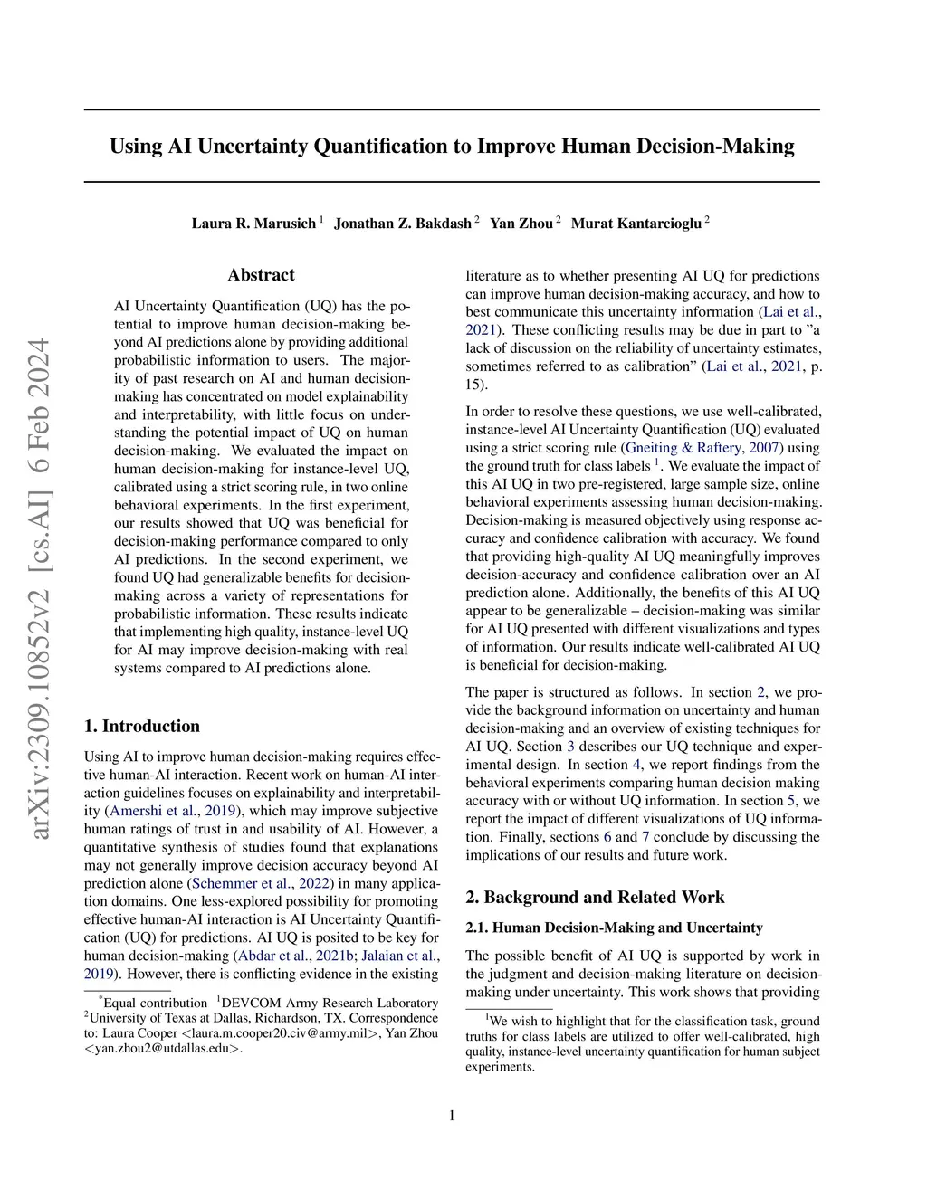 Using AI Uncertainty Quantification to Improve Human Decision-Making