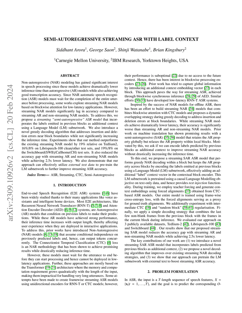 Non-autoregressive (NAR) modeling has gained significant interest in speech processing since these models achieve dramatically lower inference time than autoregressive (AR) models while also achieving good transcription accuracy. Since NAR automatic speech recognition (ASR) models must wait for the completion of the entire utterance before processing, some works explore streaming NAR models based on blockwise attention for low-latency applications. However, streaming NAR models significantly lag in accuracy compared to streaming AR and non-streaming NAR models. To address this, we propose a streaming "semi-autoregressive" ASR model that incorporates the labels emitted in previous blocks as additional context using a Language Model (LM) subnetwork. We also introduce a novel greedy decoding algorithm that addresses insertion and deletion errors near block boundaries while not significantly increasing the inference time. Experiments show that our method outperforms the existing streaming NAR model by 19% relative on Tedlium2, 16%/8% on Librispeech-100 clean/other test sets, and 19%/8% on the Switchboard(SWB)/Callhome(CH) test sets. It also reduced the accuracy gap with streaming AR and non-streaming NAR models while achieving 2.5x lower latency. We also demonstrate that our approach can effectively utilize external text data to pre-train the LM subnetwork to further improve streaming ASR accuracy.
