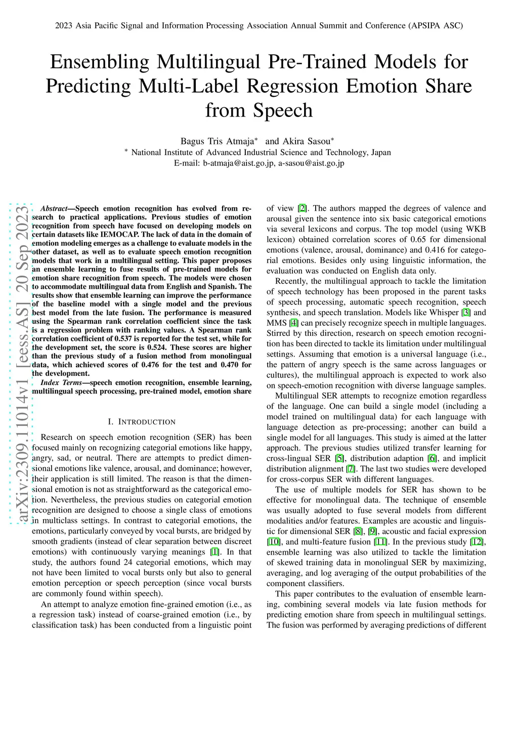 Regression Emotion Share from Speech