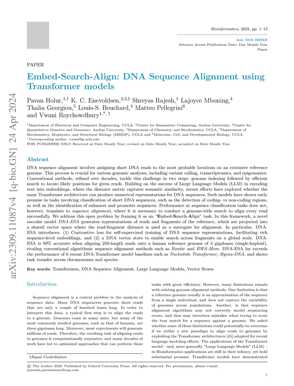 Embed-Search-Align: DNA Sequence Alignment using Transformer Models