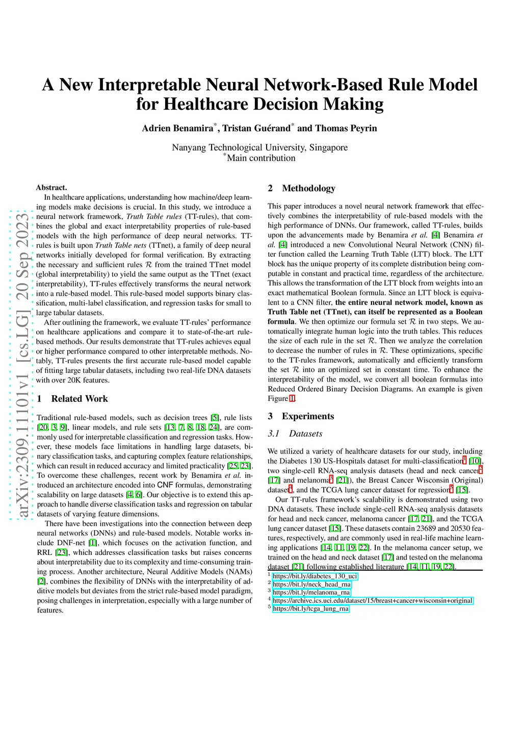 In healthcare applications, understanding how machine/deep learning models make decisions is crucial. In this study, we introduce a neural network framework, (TT-rules), that combines the global and exact interpretability properties of rule-based models with the high performance of deep neural networks. TT-rules is built upon (TTnet), a family of deep neural networks initially developed for formal verification. By extracting the necessary and sufficient rules from the trained TTnet model (global interpretability) to yield the same output as the TTnet (exact interpretability), TT-rules effectively transforms the neural network into a rule-based model. This rule-based model supports binary classification, multi-label classification, and regression tasks for small to large tabular datasets. After outlining the framework, we evaluate TT-rules' performance on healthcare applications and compare it to state-of-the-art rule-based methods. Our results demonstrate that TT-rules achieves equal or higher performance compared to other interpretable methods. Notably, TT-rules presents the first accurate rule-based model capable of fitting large tabular datasets, including two real-life DNA datasets with over 20K features.