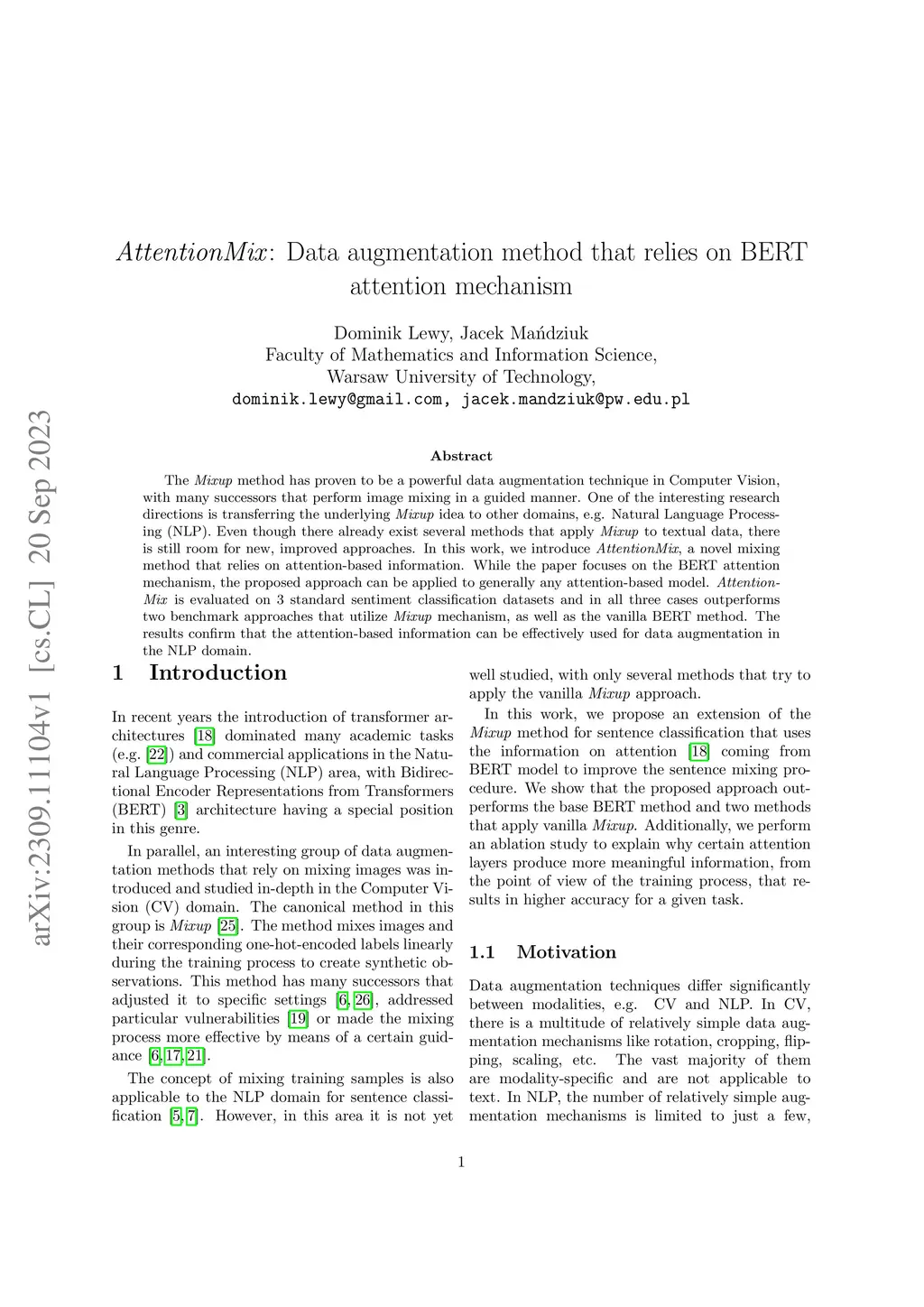 AttentionMix: Data augmentation method that relies on BERT attention