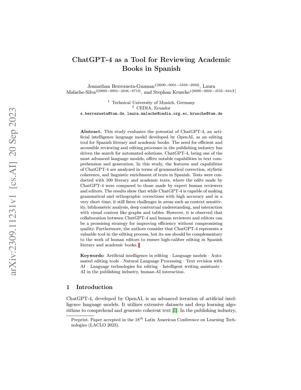 This study evaluates the potential of ChatGPT-4, an artificial intelligence language model developed by OpenAI, as an editing tool for Spanish literary and academic books. The need for efficient and accessible reviewing and editing processes in the publishing industry has driven the search for automated solutions. ChatGPT-4, being one of the most advanced language models, offers notable capabilities in text comprehension and generation. In this study, the features and capabilities of ChatGPT-4 are analyzed in terms of grammatical correction, stylistic coherence, and linguistic enrichment of texts in Spanish. Tests were conducted with 100 literary and academic texts, where the edits made by ChatGPT-4 were compared to those made by expert human reviewers and editors. The results show that while ChatGPT-4 is capable of making grammatical and orthographic corrections with high accuracy and in a very short time, it still faces challenges in areas such as context sensitivity, bibliometric analysis, deep contextual understanding, and interaction with visual content like graphs and tables. However, it is observed that collaboration between ChatGPT-4 and human reviewers and editors can be a promising strategy for improving efficiency without compromising quality. Furthermore, the authors consider that ChatGPT-4 represents a valuable tool in the editing process, but its use should be complementary to the work of human editors to ensure high-caliber editing in Spanish literary and academic books.