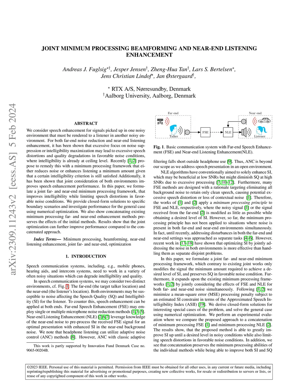 Joint Minimum Processing Beamforming and Near-end Listening Enhancement