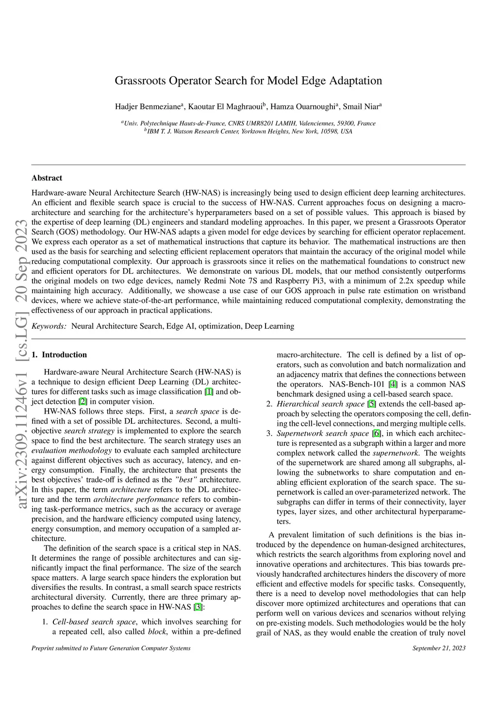 Hardware-aware Neural Architecture Search (HW-NAS) is increasingly being used to design efficient deep learning architectures. An efficient and flexible search space is crucial to the success of HW-NAS. Current approaches focus on designing a macro-architecture and searching for the architecture's hyperparameters based on a set of possible values. This approach is biased by the expertise of deep learning (DL) engineers and standard modeling approaches. In this paper, we present a Grassroots Operator Search (GOS) methodology. Our HW-NAS adapts a given model for edge devices by searching for efficient operator replacement. We express each operator as a set of mathematical instructions that capture its behavior. The mathematical instructions are then used as the basis for searching and selecting efficient replacement operators that maintain the accuracy of the original model while reducing computational complexity. Our approach is grassroots since it relies on the mathematical foundations to construct new and efficient operators for DL architectures. We demonstrate on various DL models, that our method consistently outperforms the original models on two edge devices, namely Redmi Note 7S and Raspberry Pi3, with a minimum of 2.2x speedup while maintaining high accuracy. Additionally, we showcase a use case of our GOS approach in pulse rate estimation on wristband devices, where we achieve state-of-the-art performance, while maintaining reduced computational complexity, demonstrating the effectiveness of our approach in practical applications.