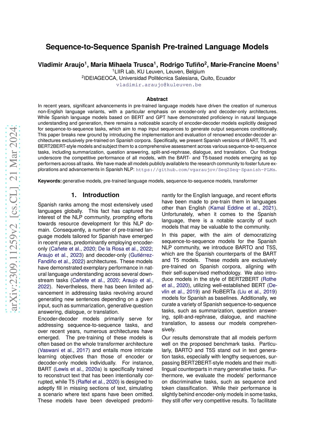 Sequence-to-Sequence Spanish Pre-trained Language Models