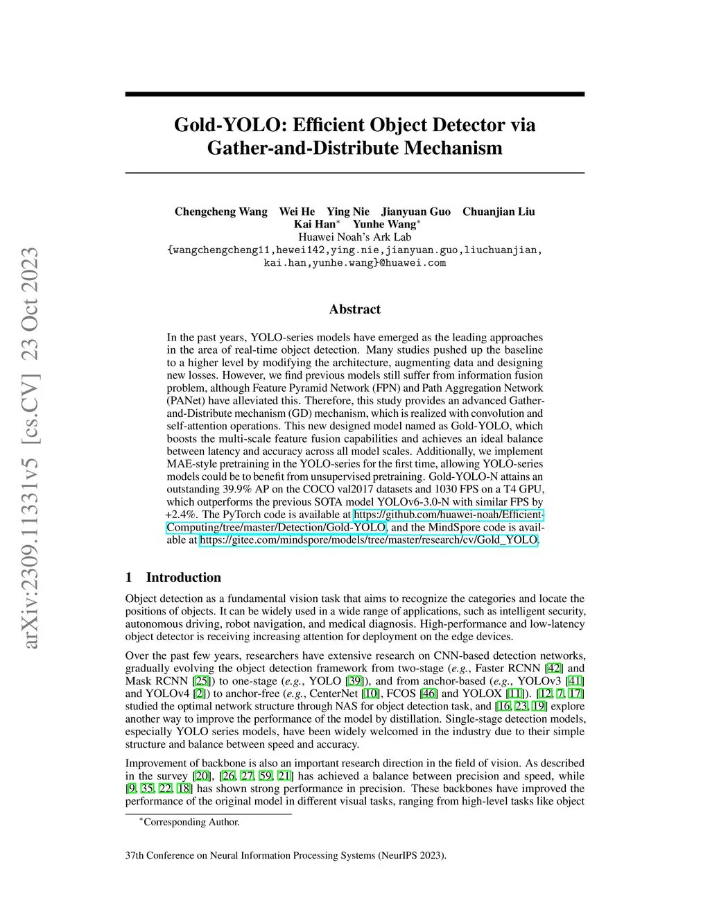 In the past years, YOLO-series models have emerged as the leading approaches in the area of real-time object detection. Many studies pushed up the baseline to a higher level by modifying the architecture, augmenting data and designing new losses. However, we find previous models still suffer from information fusion problem, although Feature Pyramid Network (FPN) and Path Aggregation Network (PANet) have alleviated this. Therefore, this study provides an advanced Gatherand-Distribute mechanism (GD) mechanism, which is realized with convolution and self-attention operations. This new designed model named as Gold-YOLO, which boosts the multi-scale feature fusion capabilities and achieves an ideal balance between latency and accuracy across all model scales. Additionally, we implement MAE-style pretraining in the YOLO-series for the first time, allowing YOLOseries models could be to benefit from unsupervised pretraining. Gold-YOLO-N attains an outstanding 39.9% AP on the COCO val2017 datasets and 1030 FPS on a T4 GPU, which outperforms the previous SOTA model YOLOv6-3.0-N with similar FPS by +2.4%. The PyTorch code is available at https://github.com/huawei-noah/Efficient-Computing/tree/master/Detection/Gold-YOLO, and the MindSpore code is available at https://gitee.com/mindspore/models/tree/master/research/cv/Gold_YOLO.