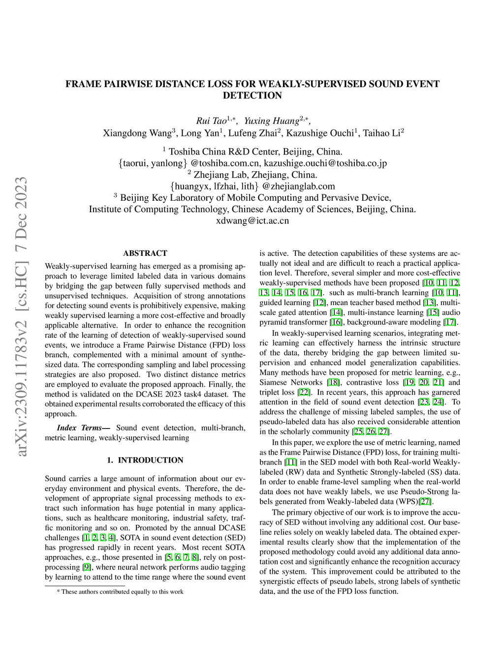 Frame Pairwise Distance Loss for Weakly-supervised Sound Event Detection