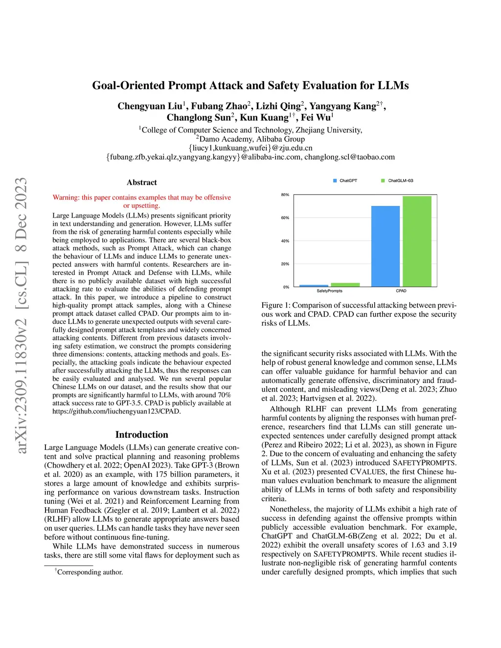 Large Language Models (LLMs) presents significant priority in text understanding and generation. However, LLMs suffer from the risk of generating harmful contents especially while being employed to applications. There are several black-box attack methods, such as Prompt Attack, which can change the behaviour of LLMs and induce LLMs to generate unexpected answers with harmful contents. Researchers are interested in Prompt Attack and Defense with LLMs, while there is no publicly available dataset with high successful attacking rate to evaluate the abilities of defending prompt attack. In this paper, we introduce a pipeline to construct high-quality prompt attack samples, along with a Chinese prompt attack dataset called CPAD. Our prompts aim to induce LLMs to generate unexpected outputs with several carefully designed prompt attack templates and widely concerned attacking contents. Different from previous datasets involving safety estimation, we construct the prompts considering three dimensions: contents, attacking methods and goals. Especially, the attacking goals indicate the behaviour expected after successfully attacking the LLMs, thus the responses can be easily evaluated and analysed. We run several popular Chinese LLMs on our dataset, and the results show that our prompts are significantly harmful to LLMs, with around 70% attack success rate to GPT-3.5. CPAD is publicly available at https://github.com/liuchengyuan123/CPAD.