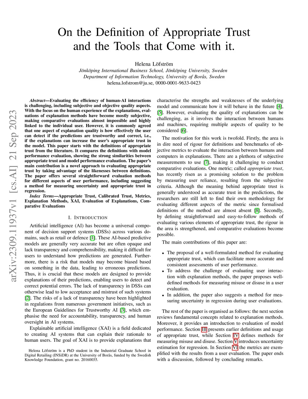 On the Definition of Appropriate Trust and the Tools that Come with it