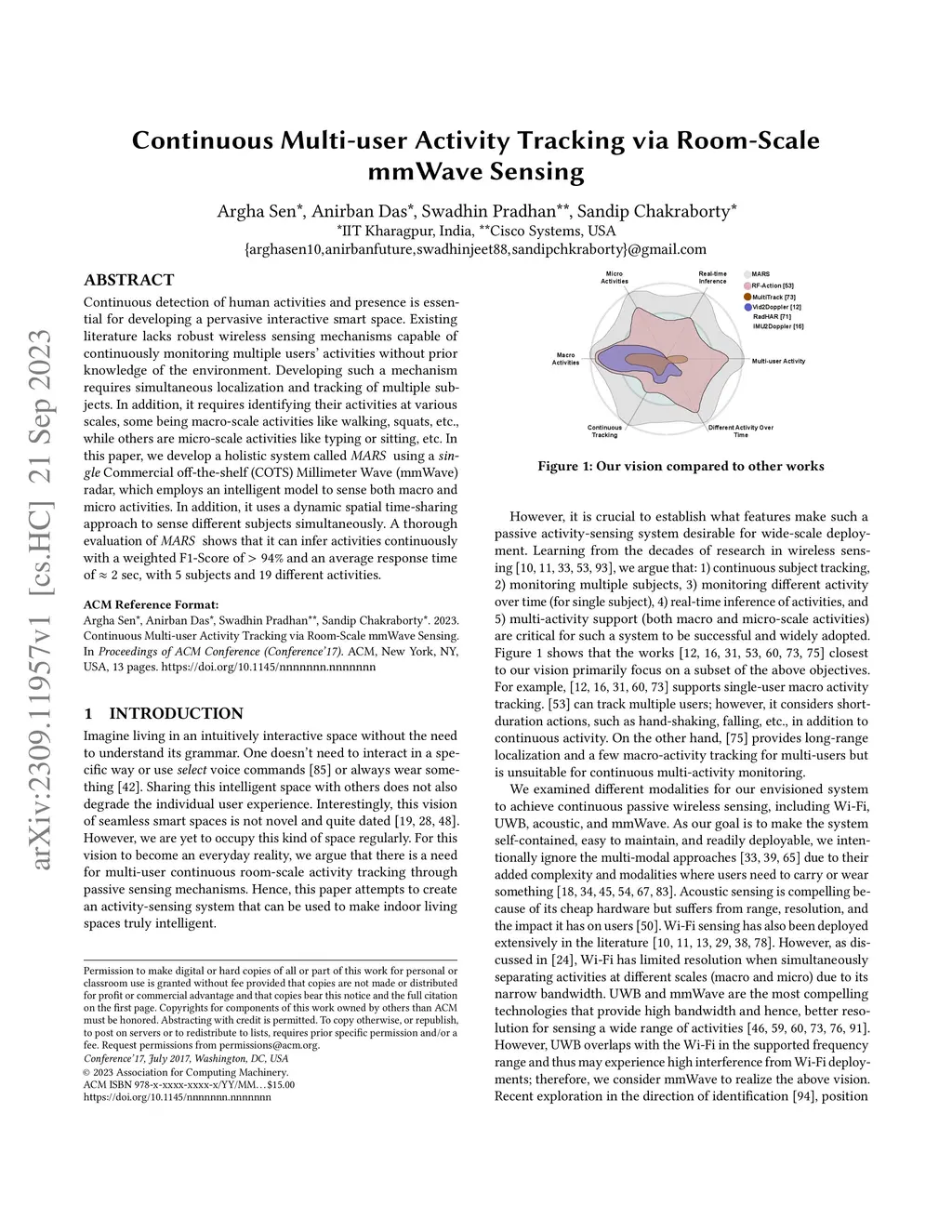 Continuous detection of human activities and presence is essential for developing a pervasive interactive smart space. Existing literature lacks robust wireless sensing mechanisms capable of continuously monitoring multiple users' activities without prior knowledge of the environment. Developing such a mechanism requires simultaneous localization and tracking of multiple subjects. In addition, it requires identifying their activities at various scales, some being macro-scale activities like walking, squats, etc., while others are micro-scale activities like typing or sitting, etc. In this paper, we develop a holistic system called MARS using a single Commercial off the-shelf (COTS) Millimeter Wave (mmWave) radar, which employs an intelligent model to sense both macro and micro activities. In addition, it uses a dynamic spatial time sharing approach to sense different subjects simultaneously. A thorough evaluation of MARS shows that it can infer activities continuously with a weighted F1-Score of > 94% and an average response time of approx 2 sec, with 5 subjects and 19 different activities.