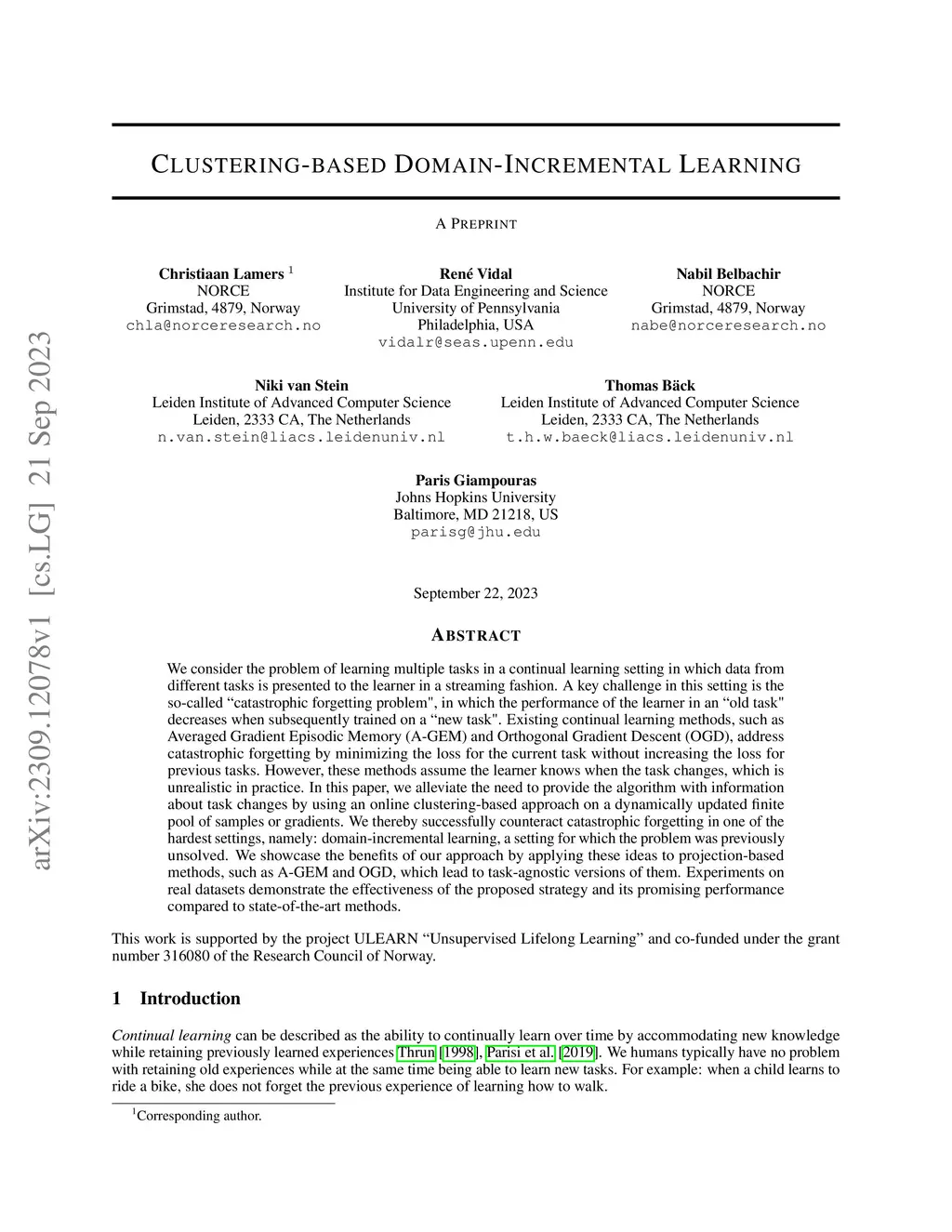 Clustering-based Domain-Incremental Learning