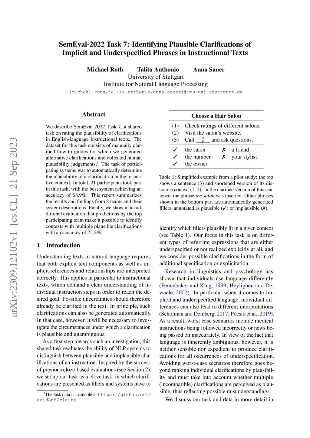SemEval-2022 Task 7: Identifying Plausible Clarifications of Implicit