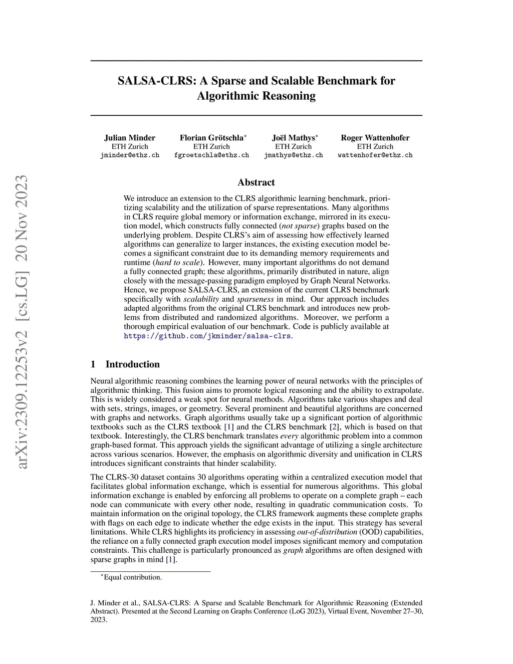 SALSA-CLRS: A Sparse and Scalable Benchmark for Algorithmic Reasoning