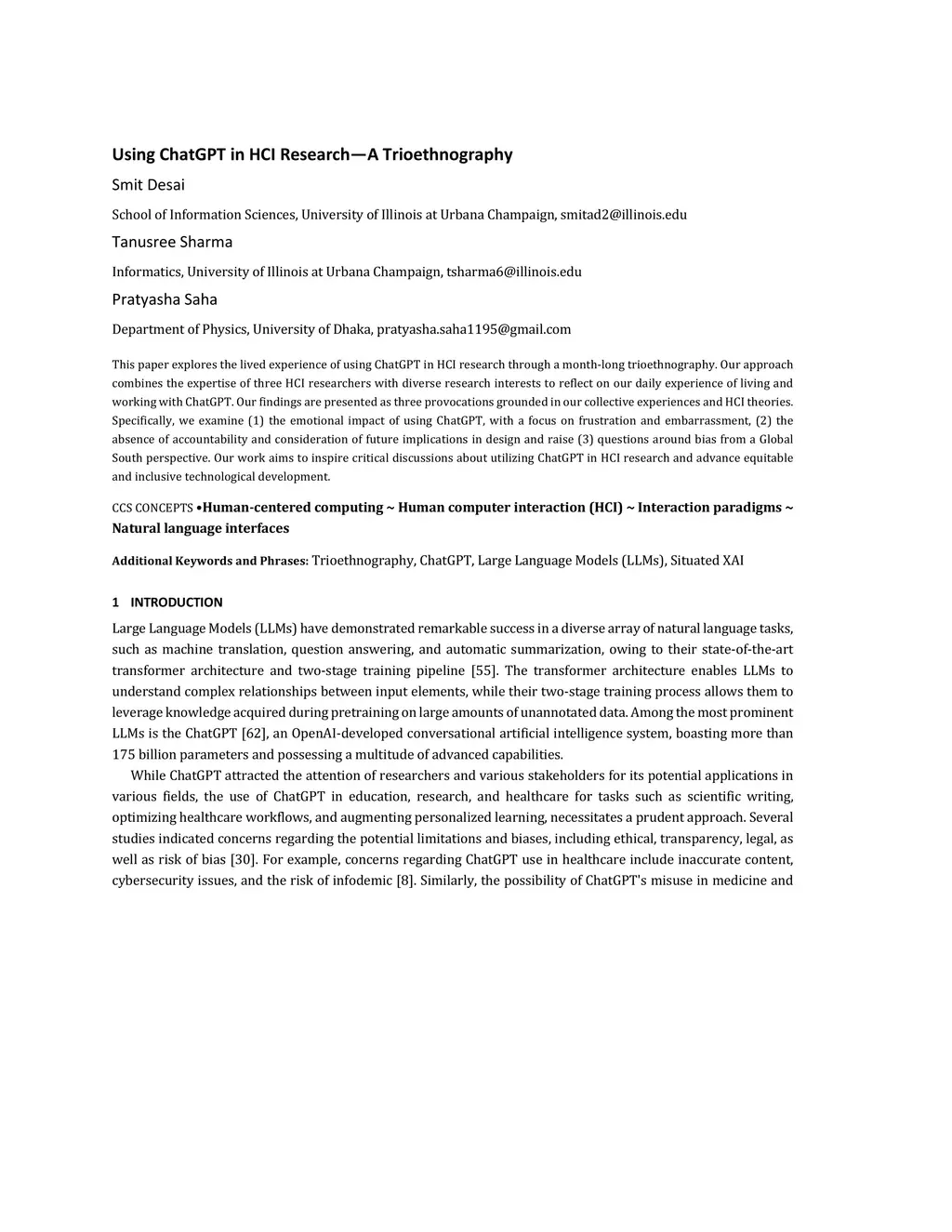 This paper explores the lived experience of using ChatGPT in HCI research through a month-long trioethnography. Our approach combines the expertise of three HCI researchers with diverse research interests to reflect on our daily experience of living and working with ChatGPT. Our findings are presented as three provocations grounded in our collective experiences and HCI theories. Specifically, we examine (1) the emotional impact of using ChatGPT, with a focus on frustration and embarrassment, (2) the absence of accountability and consideration of future implications in design, and raise (3) questions around bias from a Global South perspective. Our work aims to inspire critical discussions about utilizing ChatGPT in HCI research and advance equitable and inclusive technological development.