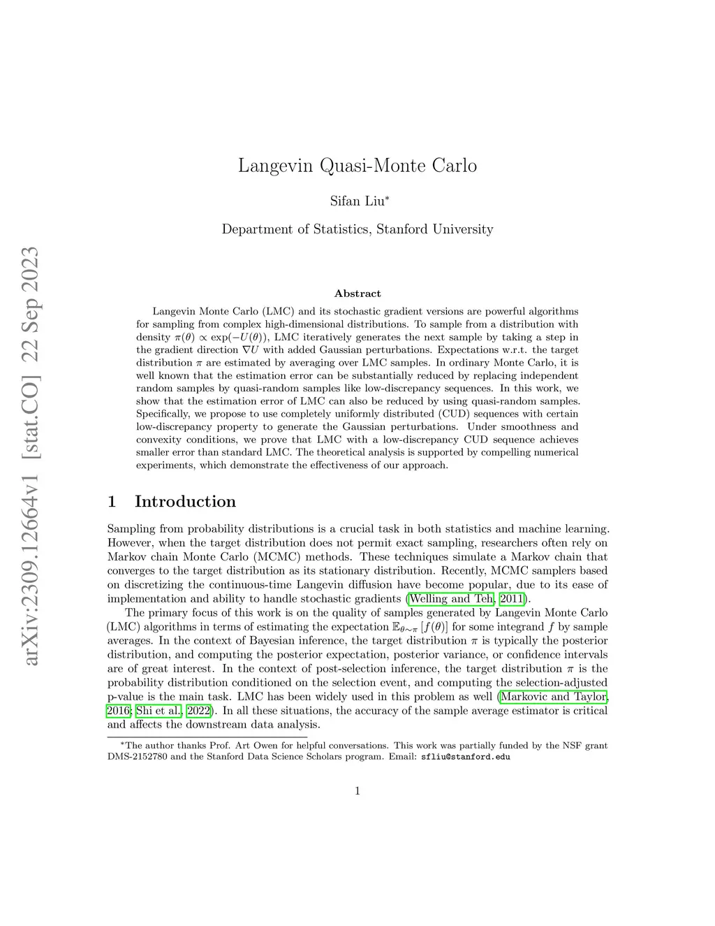 Langevin Monte Carlo (LMC) and its stochastic gradient versions are powerful algorithms for sampling from complex high-dimensional distributions. To sample from a distribution with density $\pi(\theta)\propto \exp(-U(\theta)) $, LMC iteratively generates the next sample by taking a step in the gradient direction with added Gaussian perturbations. Expectations w.r.t. the target distribution are estimated by averaging over LMC samples. In ordinary Monte Carlo, it is well known that the estimation error can be substantially reduced by replacing independent random samples by quasi-random samples like low-discrepancy sequences. In this work, we show that the estimation error of LMC can also be reduced by using quasi-random samples. Specifically, we propose to use completely uniformly distributed (CUD) sequences with certain low-discrepancy property to generate the Gaussian perturbations. Under smoothness and convexity conditions, we prove that LMC with a low-discrepancy CUD sequence achieves smaller error than standard LMC. The theoretical analysis is supported by compelling numerical experiments, which demonstrate the effectiveness of our approach.