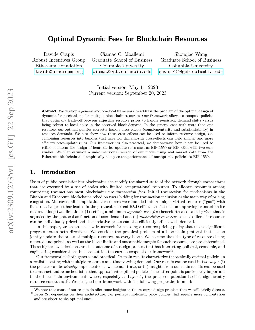 We develop a general and practical framework to address the problem of the optimal design of dynamic fee mechanisms for multiple blockchain resources. Our framework allows to compute policies that optimally trade-off between adjusting resource prices to handle persistent demand shifts versus being robust to local noise in the observed block demand. In the general case with more than one resource, our optimal policies correctly handle cross-effects (complementarity and substitutability) in resource demands. We also show how these cross-effects can be used to inform resource design, i.e. combining resources into bundles that have low demand-side cross-effects can yield simpler and more efficient price-update rules. Our framework is also practical, we demonstrate how it can be used to refine or inform the design of heuristic fee update rules such as EIP-1559 or EIP-4844 with two case studies. We then estimate a uni-dimensional version of our model using real market data from the Ethereum blockchain and empirically compare the performance of our optimal policies to EIP-1559.