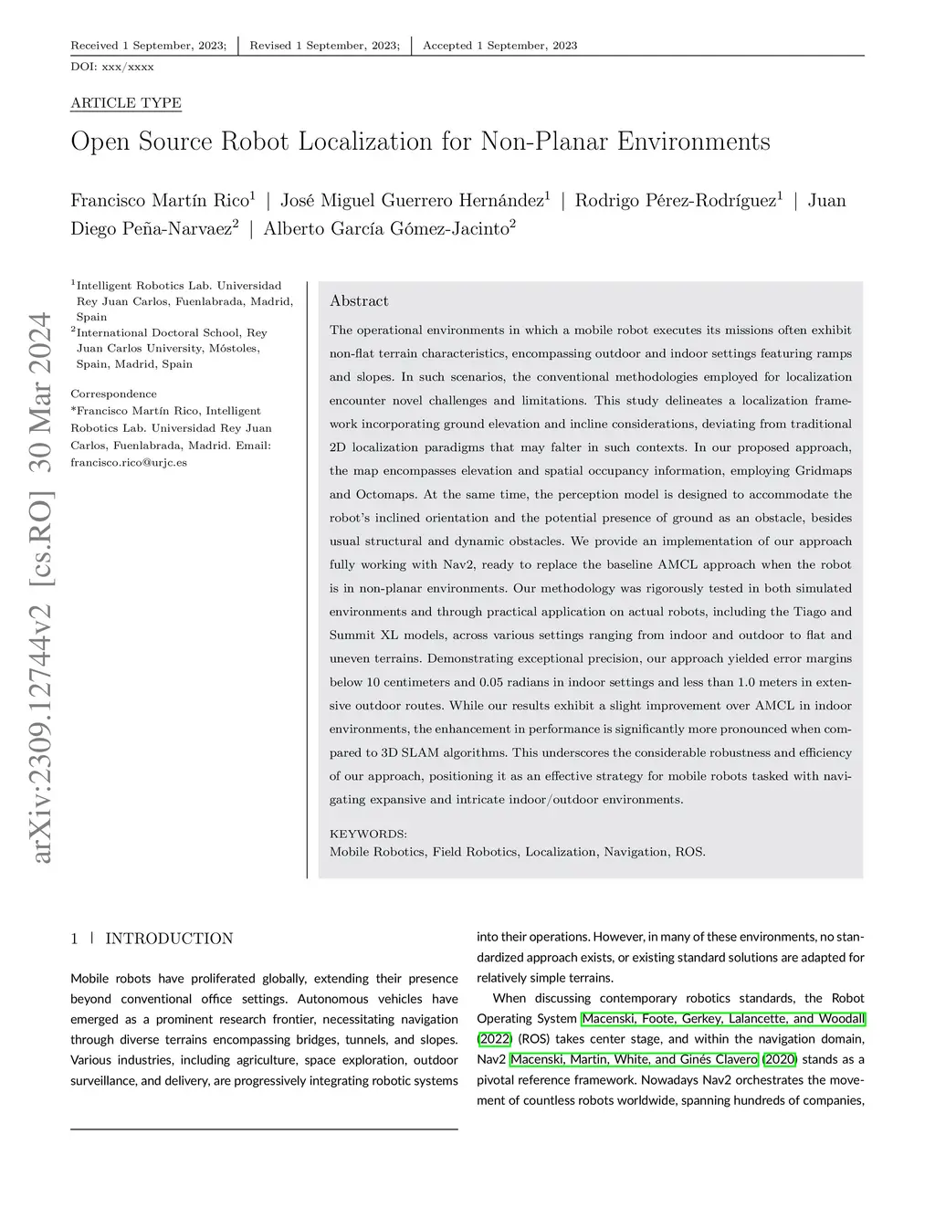 The operational environments in which a mobile robot executes its missions often exhibit non-flat terrain characteristics, encompassing outdoor and indoor settings featuring ramps and slopes. In such scenarios, the conventional methodologies employed for localization encounter novel challenges and limitations. This study delineates a localization framework incorporating ground elevation and incline considerations, deviating from traditional 2D localization paradigms that may falter in such contexts. In our proposed approach, the map encompasses elevation and spatial occupancy information, employing Gridmaps and Octomaps. At the same time, the perception model is designed to accommodate the robot's inclined orientation and the potential presence of ground as an obstacle, besides usual structural and dynamic obstacles. We provide an implementation of our approach fully working with Nav2, ready to replace the baseline AMCL approach when the robot is in non-planar environments. Our methodology was rigorously tested in both simulated environments and through practical application on actual robots, including the Tiago and Summit XL models, across various settings ranging from indoor and outdoor to flat and uneven terrains. Demonstrating exceptional precision, our approach yielded error margins below 10 centimeters and 0.05 radians in indoor settings and less than 1.0 meters in extensive outdoor routes. While our results exhibit a slight improvement over AMCL in indoor environments, the enhancement in performance is significantly more pronounced when compared to 3D SLAM algorithms. This underscores the considerable robustness and efficiency of our approach, positioning it as an effective strategy for mobile robots tasked with navigating expansive and intricate indoor/outdoor environments.