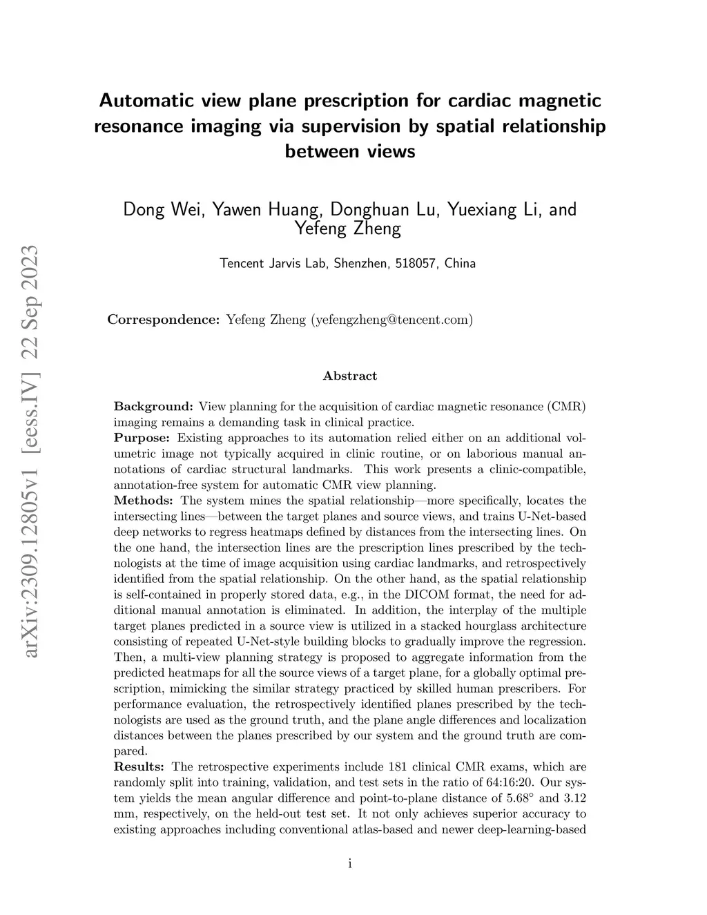 Automatic view plane prescription for cardiac magnetic resonance imaging