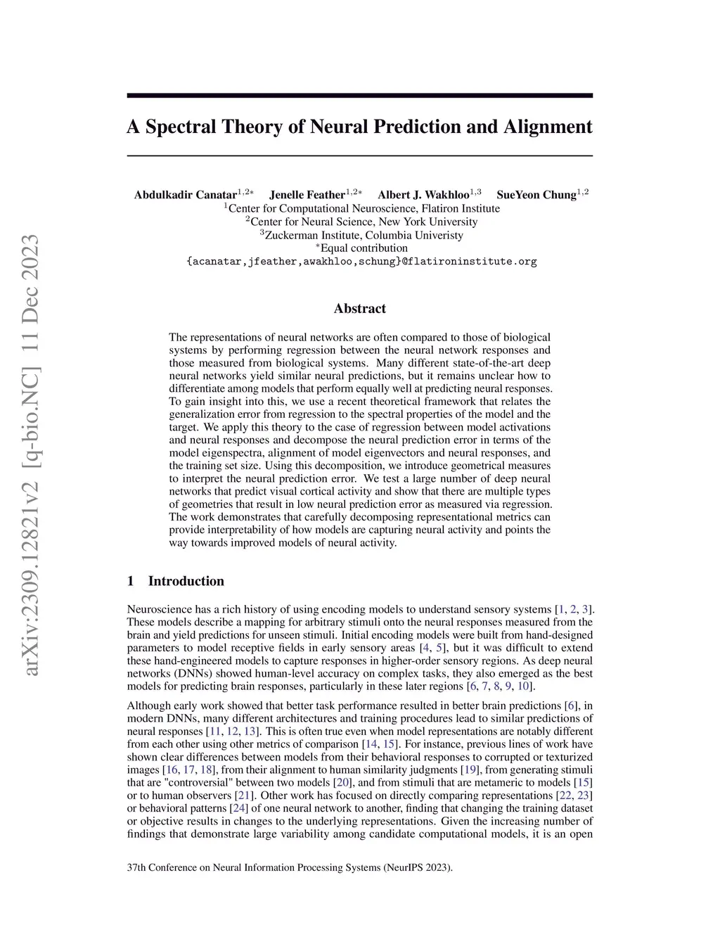 A Spectral Theory of Neural Prediction and Alignment