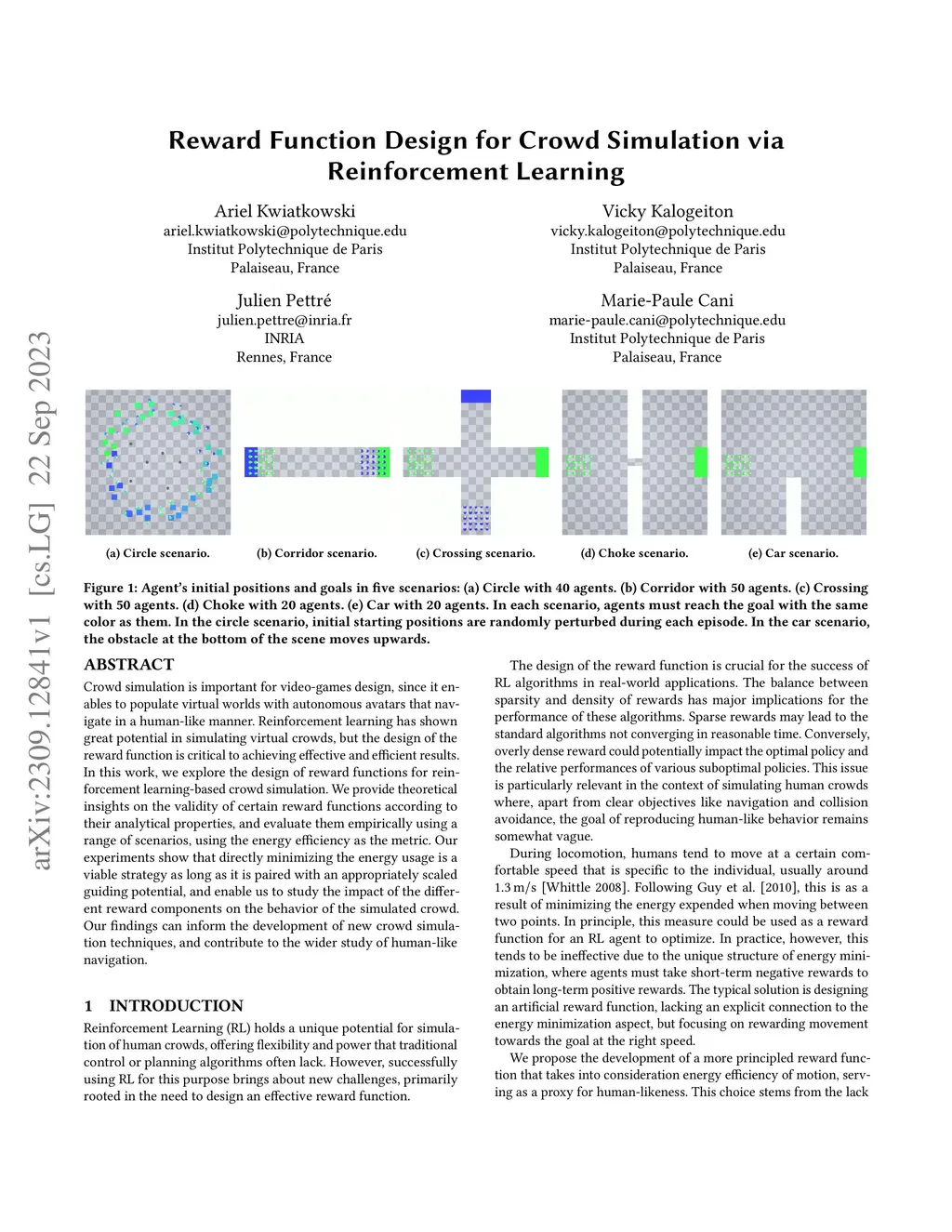 Reward Function Design for Crowd Simulation via Reinforcement Learning