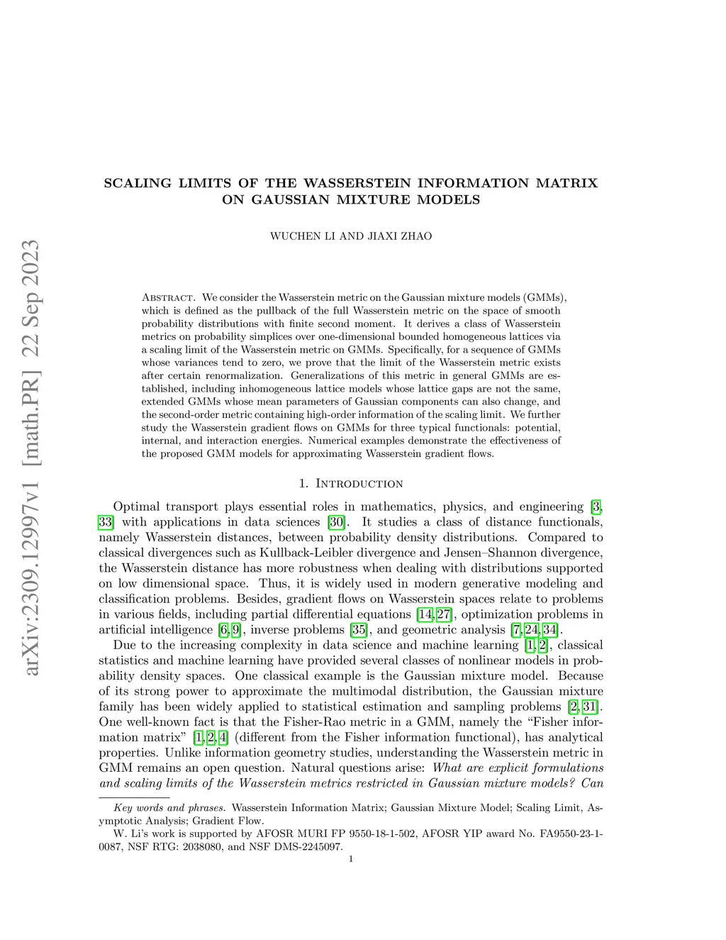 We consider the Wasserstein metric on the Gaussian mixture models (GMMs), which is defined as the pullback of the full Wasserstein metric on the space of smooth probability distributions with finite second moment. It derives a class of Wasserstein metrics on probability simplices over one-dimensional bounded homogeneous lattices via a scaling limit of the Wasserstein metric on GMMs. Specifically, for a sequence of GMMs whose variances tend to zero, we prove that the limit of the Wasserstein metric exists after certain renormalization. Generalizations of this metric in general GMMs are established, including inhomogeneous lattice models whose lattice gaps are not the same, extended GMMs whose mean parameters of Gaussian components can also change, and the second-order metric containing high-order information of the scaling limit. We further study the Wasserstein gradient flows on GMMs for three typical functionals: potential, internal, and interaction energies. Numerical examples demonstrate the effectiveness of the proposed GMM models for approximating Wasserstein gradient flows.