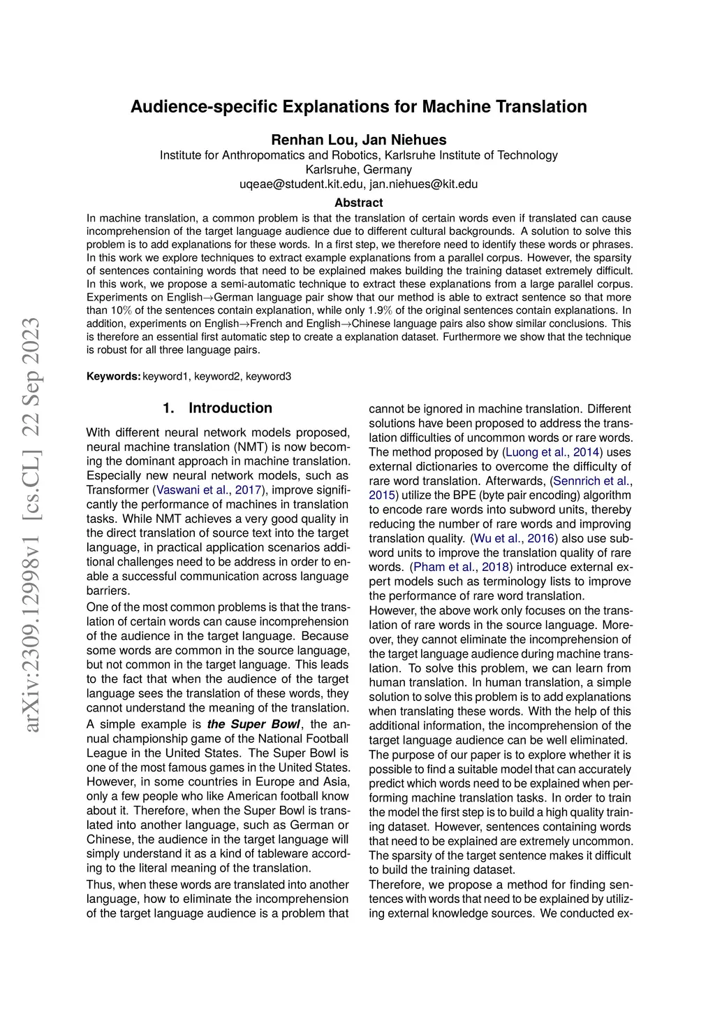 Audience-specific Explanations for Machine Translation
