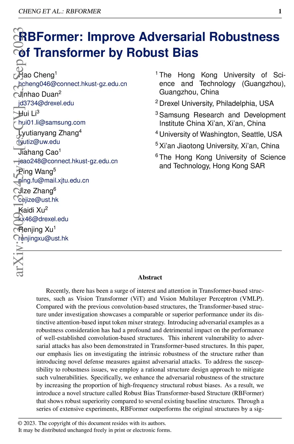 RBFormer: Improve Adversarial Robustness of Transformer by Robust Bias
