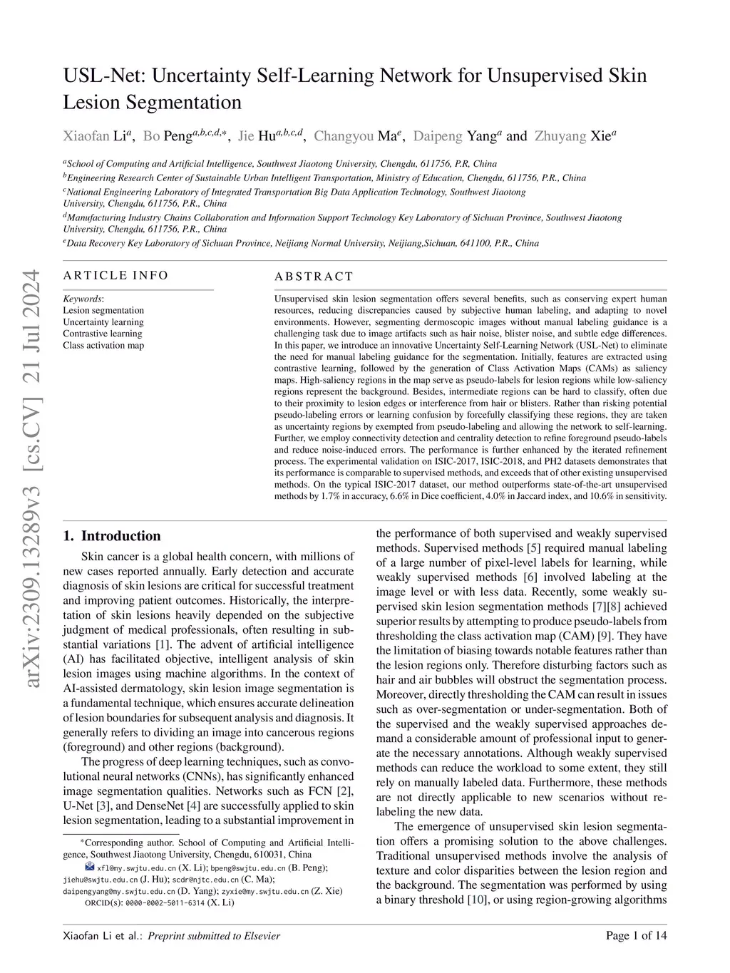 USL-Net: Uncertainty Self-Learning Network for Unsupervised Skin Lesion Segmentation