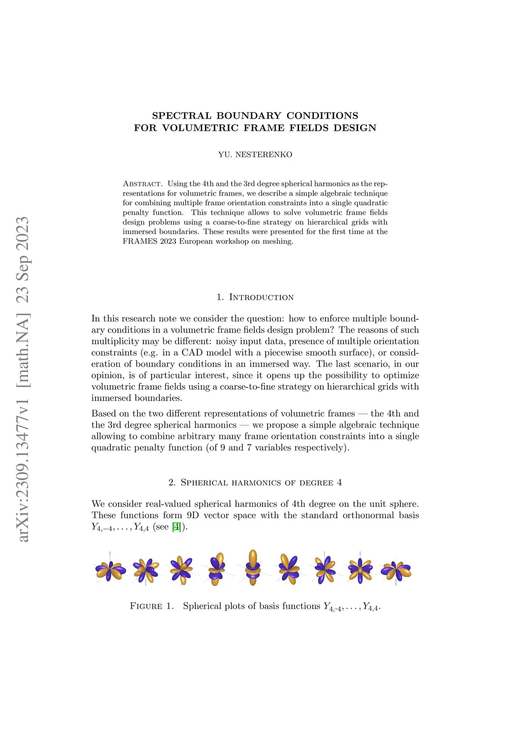 Using the 4th and the 3rd degree spherical harmonics as the representations for volumetric frames, we describe a simple algebraic technique for combining multiple frame orientation constraints into a single quadratic penalty function. This technique allows to solve volumetric frame fields design problems using a coarse-to-fine strategy on hierarchical grids with immersed boundaries. These results were presented for the first time at the FRAMES 2023 European workshop on meshing.