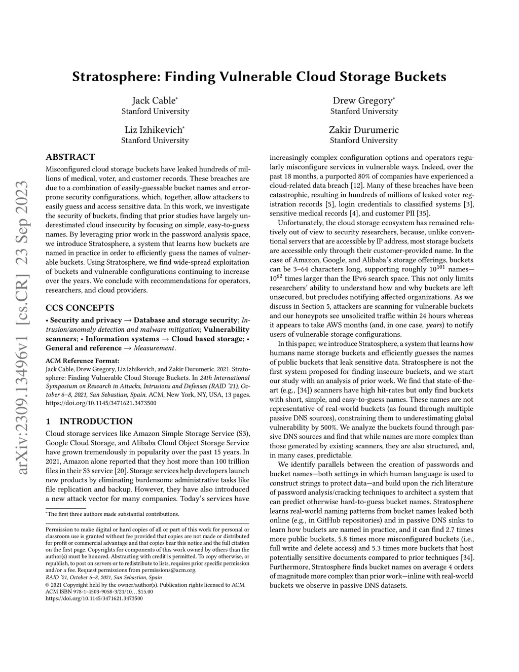Stratosphere: Finding Vulnerable Cloud Storage Buckets