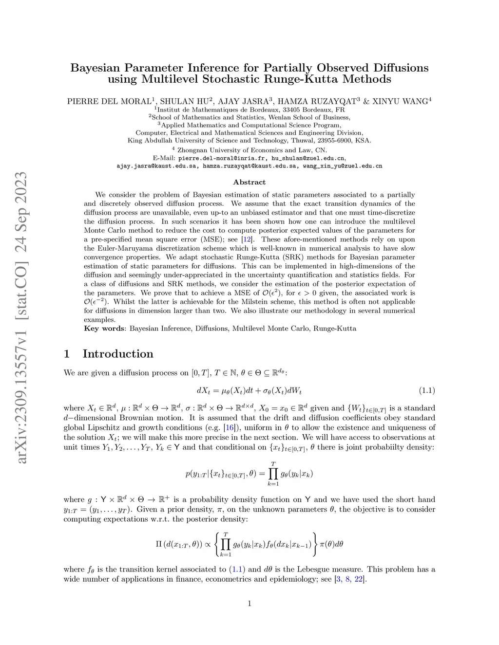 Bayesian Parameter Inference for Partially Observed Diffusions using