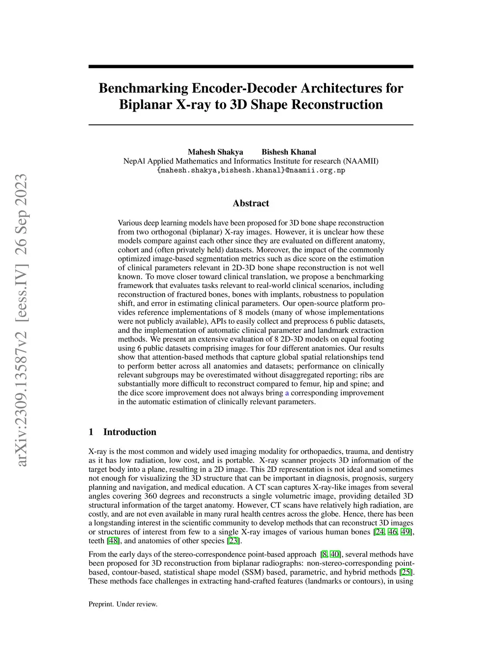 Benchmarking Encoder-Decoder Architectures for Biplanar X-ray to 3D