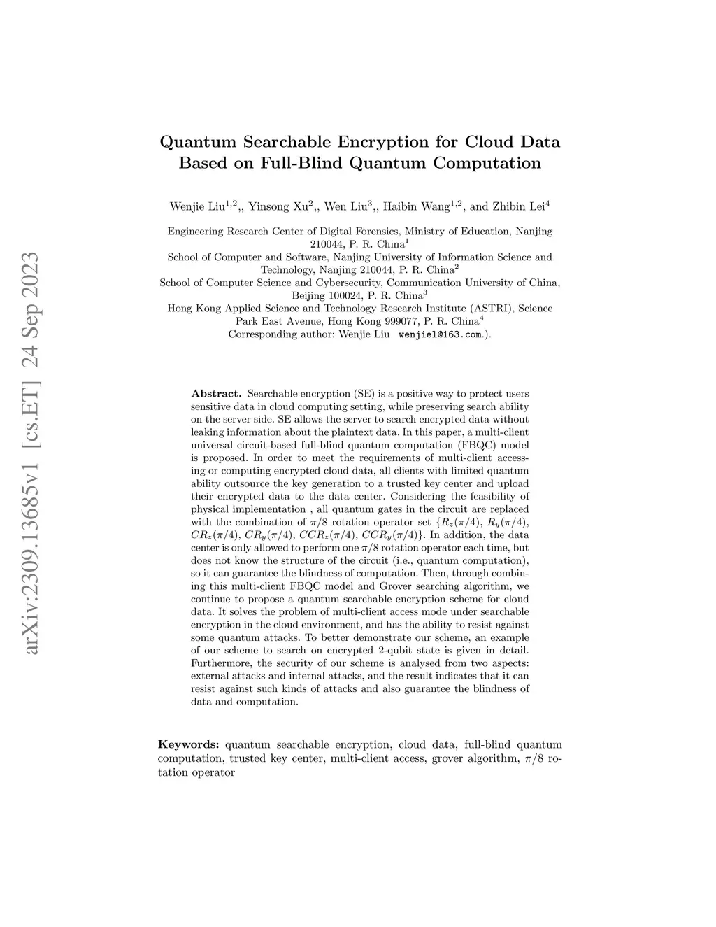 Quantum Searchable Encryption for Cloud Data Based on Full-Blind Quantum