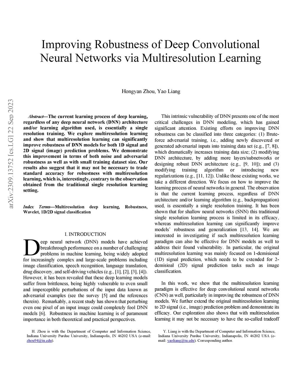 The current learning process of deep learning, regardless of any deep neural network (DNN) architecture and/or learning algorithm used, is essentially a single resolution training. We explore multiresolution learning and show that multiresolution learning can significantly improve robustness of DNN models for both 1D signal and 2D signal (image) prediction problems. We demonstrate this improvement in terms of both noise and adversarial robustness as well as with small training dataset size. Our results also suggest that it may not be necessary to trade standard accuracy for robustness with multiresolution learning, which is, interestingly, contrary to the observation obtained from the traditional single resolution learning setting.